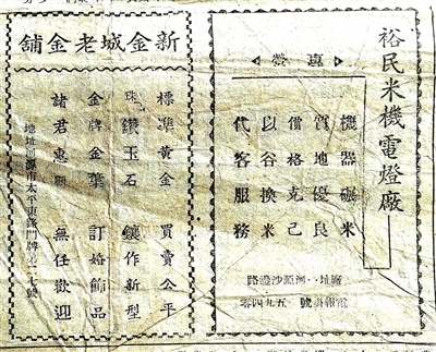 ■裕民米机在1948年10月的《正义日报》上刊登的广告,彼时河源城很多人家已用上了电灯。(原件现藏源城区档案馆)