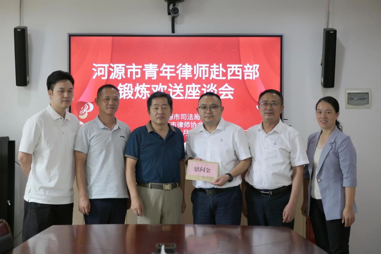 练斌代表市司法局、市律师行业党委指出,开展青年律师西部锻炼,是引导广大青年律师努力做党和人民满意的好律师,服务新时代推动西部大开发的务实举措,希望王治朝律师:一要提高政治站位。要充分认识此次赴西部锻炼的重要意义,牢固树立大局意识,服务意识,将个人成长融入国家法治建设全局。二要增强工作责任感、使命感。做好事,尽好责,以解决西部群众“急难愁盼”法律需求为己任,以专业服务维护律师行业公信力。三要把握机遇提升专业能力。当前西部法治建设处于“补短板、强根基”关键期,此次锻炼既是青年律师提升跨区域实务能力的契机,更是践行法治初心的答卷。四要积极融入促团结。主动适应服务地民族文化、风俗习惯,与当地建立融洽关系,建立感情,增进理解以更好开展工作。五要严守纪律底线。严守政治纪律,确保服务方向正确;严守工作纪律,恪守岗位职责。最后,希望王治朝律师能够坚持良好的工作作风展现河源律师、广东律师风采,并赠上美好祝愿。