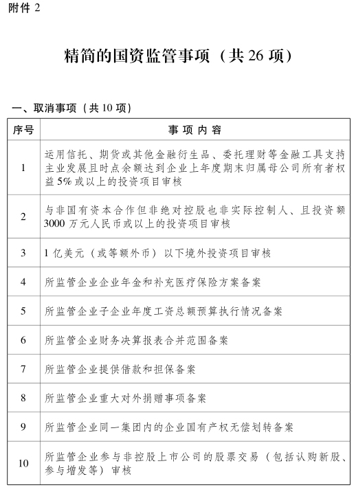 附件:1.强化转变的国资监管职能(共12项) 2.精简的国资监管事项(共26项)