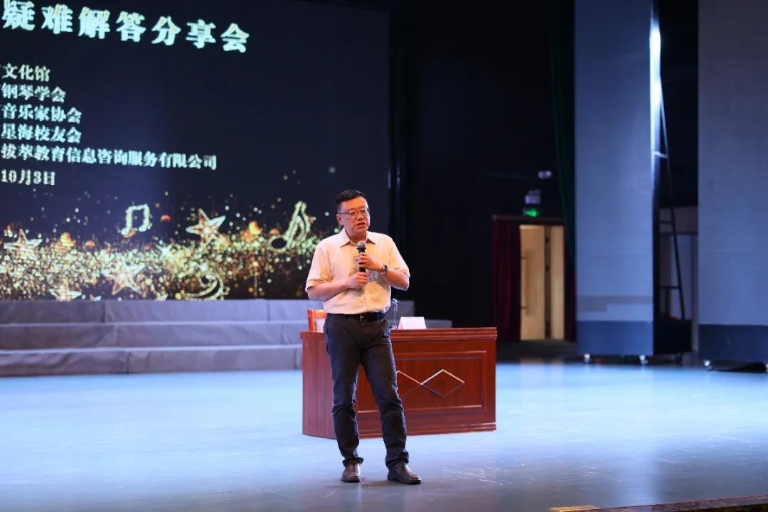 在钢琴疑难解答分享会上,黎颂文教授给学员们讲解了西方钢琴音乐文化的发展以及中西方文化融合的重要性。围绕“中国传统音乐文化教育怎样融入钢琴教学”的内容,做出详细地阐述与介绍。以问答的交流形式,针对在座专业钢琴教师所提出的在教学中遇到的问题予以精确解答。