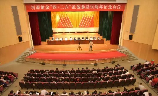 铭记是对先辈最好的缅怀,传承是对历史最好的纪念。26 日上午,在雄壮的国歌声中,河源紫金 " 四 · 二六 " 武装暴动 90 周年纪念会议在紫金县举行,缅怀革命先烈,传承革命精神,增强文化自信,推动振兴发展,为迎接党的十九大和建军 90 周年营造良好的社会舆论氛围。