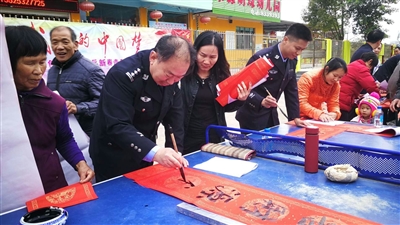 ■红色文艺轻骑兵为村民义写对联(市摄影家协会供图)