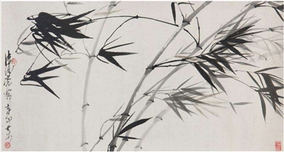 刘大步喜欢竹,正因为竹的操守。竹的心空虚、有节,坚直,耐寒,四时常绿不变,正好象征正直坚贞高尚的人格,又可写胸中逸气,所以“天地万物,选竹而画”。