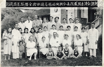 ■1949年,河源仁济医院护士柯尼逊回国前,与医院同事留影。