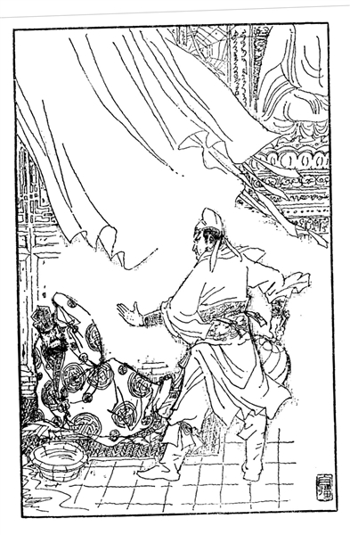 《西湖古代白话小说选》插图,描述郑虎臣历数贾似道之罪。