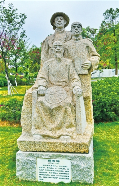 ■客家文化公园内颜氏三代塑像 冯晓铭 摄