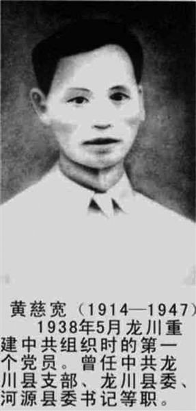 麦文很快向黄慈宽说明,他就是从延安回来的共产党员。黄慈宽立即兴奋地提出要入党,麦文答应做他的入党介绍人,写了入党誓词,并为他举行入党仪式。黄慈宽成为龙川县党组织重建后发展的第一名党员。龙川党建新局面就此打开。