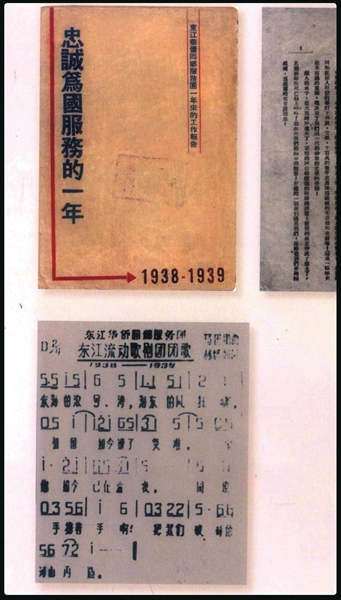 东江华侨回乡服务团工作报告封面及第一页(原件现藏广东革命历史博物馆)。