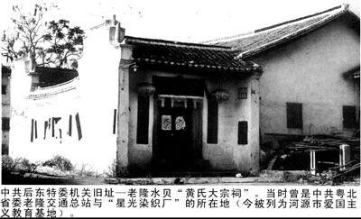 ■中共后东特委机关旧址——老隆水贝黄氏大宗祠,曾是中共粤北省委老隆交通总站与星光染织厂所在地。资料图