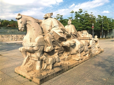 ■河源客家文化公园内的秦军南下雕塑作品 凌丽 摄