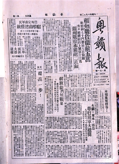 1949年4月,解放大军已从四面八方渡过长江,国内局势变化迅速,一日千里。为及时报道进程,《粤赣报》由三日刊改为两日刊。密集的报道,令读者十分关注迎军事宜。