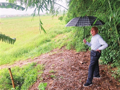 ■站在东源县顺天镇党演河岸边,朱雄旺回忆当年帮助解放军渡河的情景。 凌丽 摄