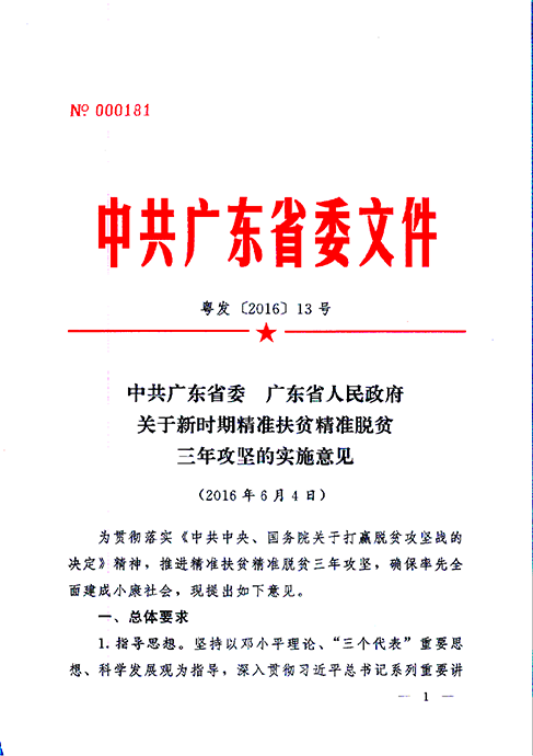 粤发[2016]13号:中共广东省委 广东省人民政府关于新时期精准扶贫精准脱贫三年攻坚的实施意见