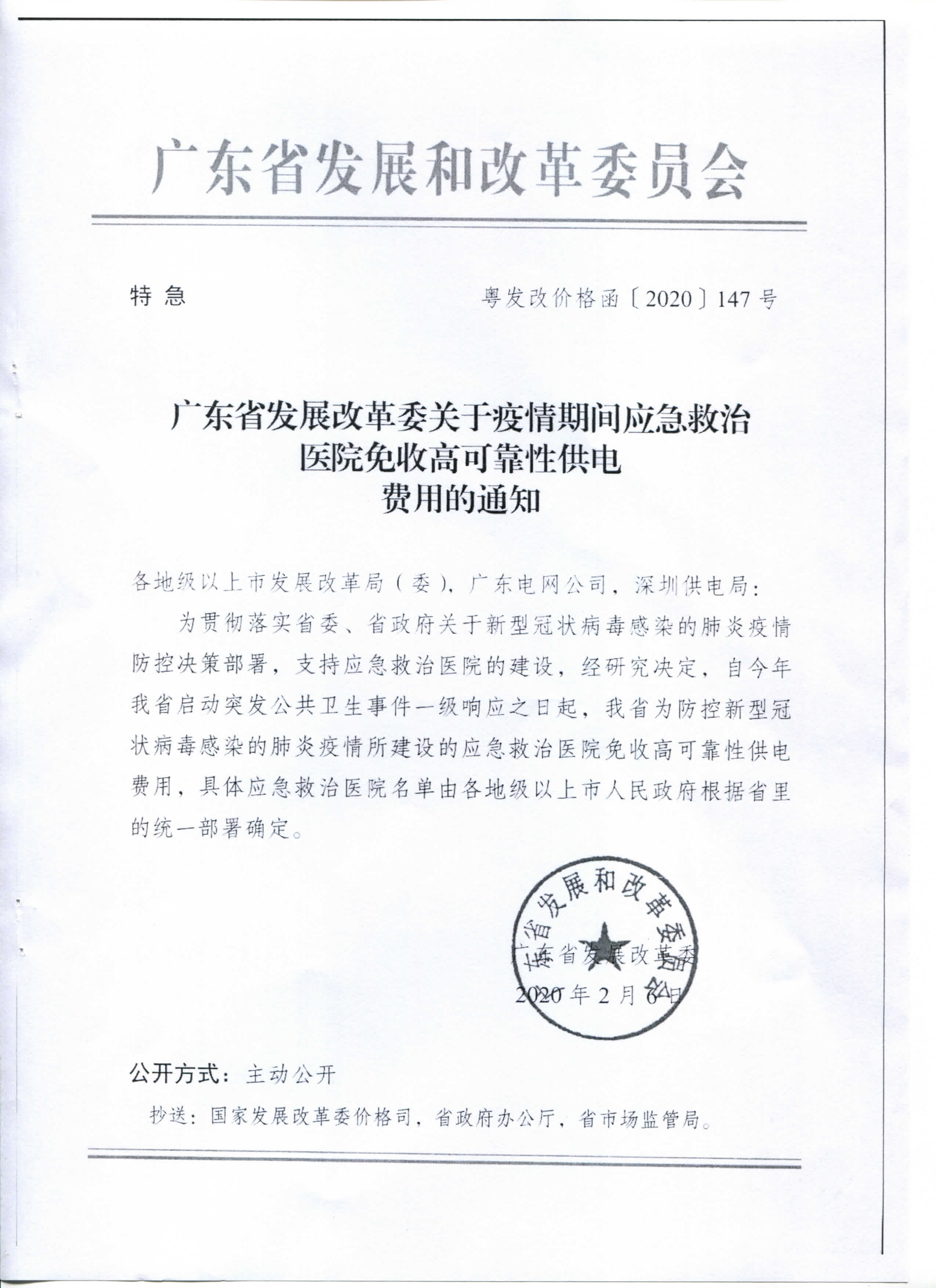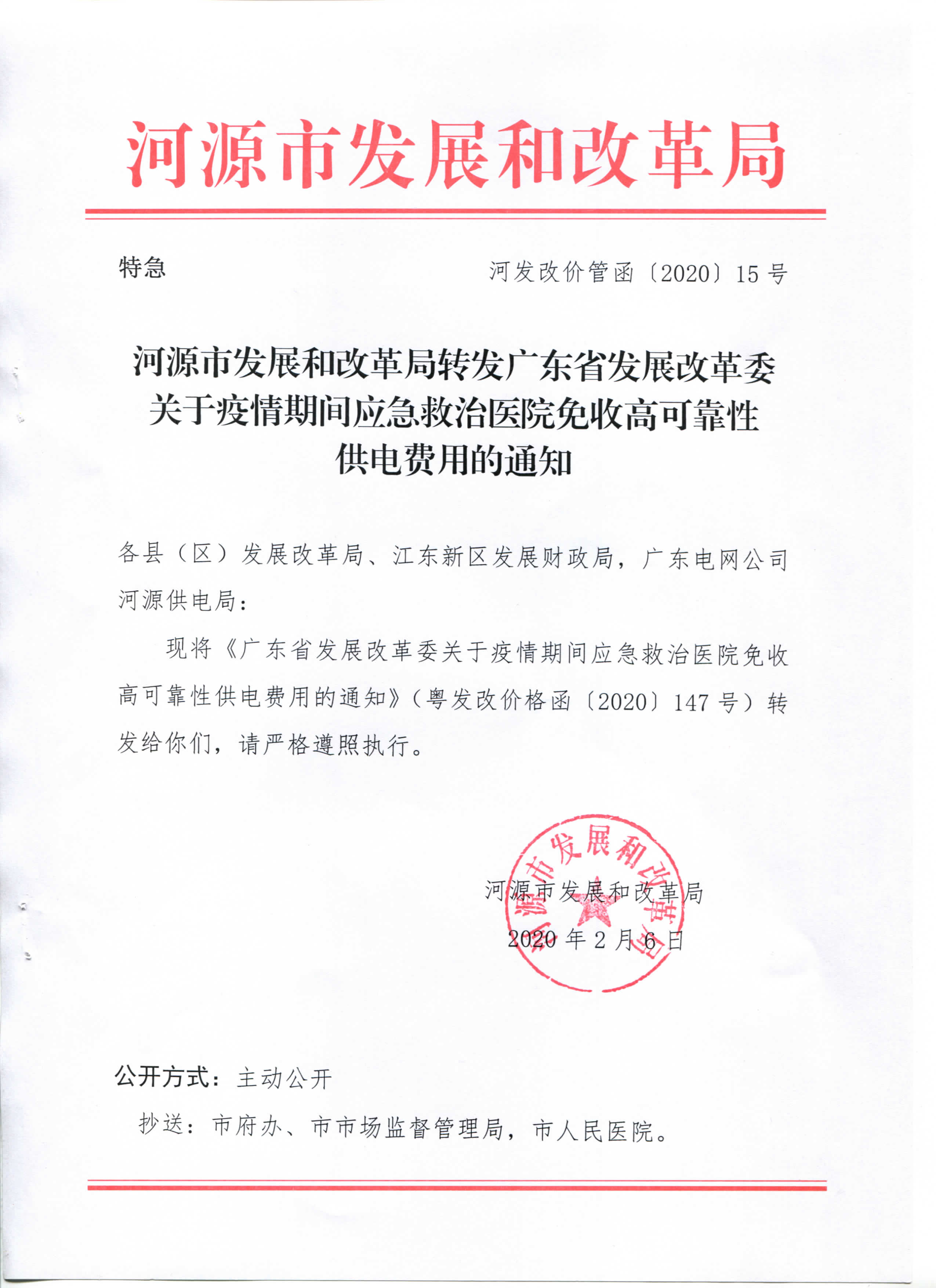 河源市发展和改革局转发广东省发展改革委关于疫情期间应急救助医院免收高可靠性供电费用的通知