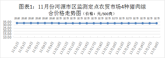 河源市发展和改革局的价格监测数据显示:与上月比,11月份河源市区的猪肉价格轻幅回落,其它畜类、禽蛋、蔬菜、水产品、粮油价格总体稳定,个别品种价格现小幅波动。