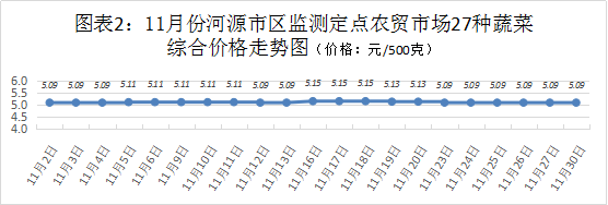 27个蔬菜品种月均综合价格5.11元,环比微涨0.39%。月内蔬菜综合价格运行较为平稳(图表2)。其中:西红柿5.5元、莴笋5.5元、茄子4.76元、青尖椒5.93元、苦瓜5.26元,环比分别涨4.76%4.76%5.78%5.2%18.6%
