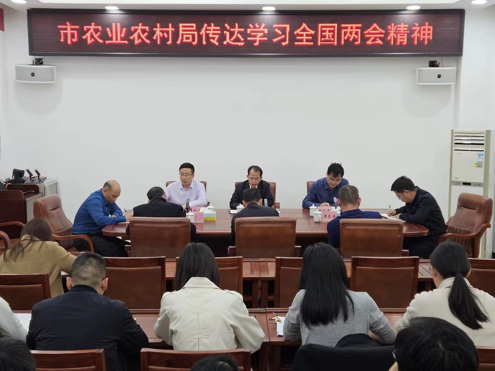 3月18日下午,市农业农村局召开党组(扩大)会议,传达学习贯彻习近平总书记在全国两会期间的重要讲话精神、李强总理参加广东代表团审议时的讲话精神和全国两会精神,按照全省传达贯彻习近平总书记重要讲话精神暨全国两会精神干部大会精神、市委常委会(扩大)会议暨全市传达贯彻习近平总书记重要讲话精神和全国两会精神干部大会要求,对局贯彻落实工作进行部署。