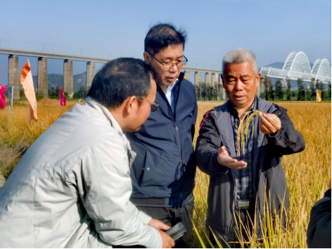 专家现场考察水稻长势