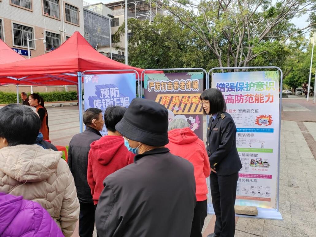 活动中,工作人员及党员志愿者通过设立常见消费陷阱展架展板、发放防诈提示宣传单、现场服务讲座等形式,提醒老年群众要提高反诈意识。工作人员及党员志愿者用通俗易懂的语言向老年群众详细讲解养老过程中消费诈骗的常用手段、案例,警示老年群众,揭露养老诈骗的常见“套路”,提醒老年群众在遇到提供“养老服务”、投资“养老项目”、销售“养老产品”等行为时应注意的事项。积极引导老年群众科学理性消费,自觉抵制各类侵害老年群众财产权益的违法犯罪行为、欺诈和虚假宣传等诈骗行为,提高警惕,避免上当受骗,遇到消费纠纷时可拨打12345或12315电话。