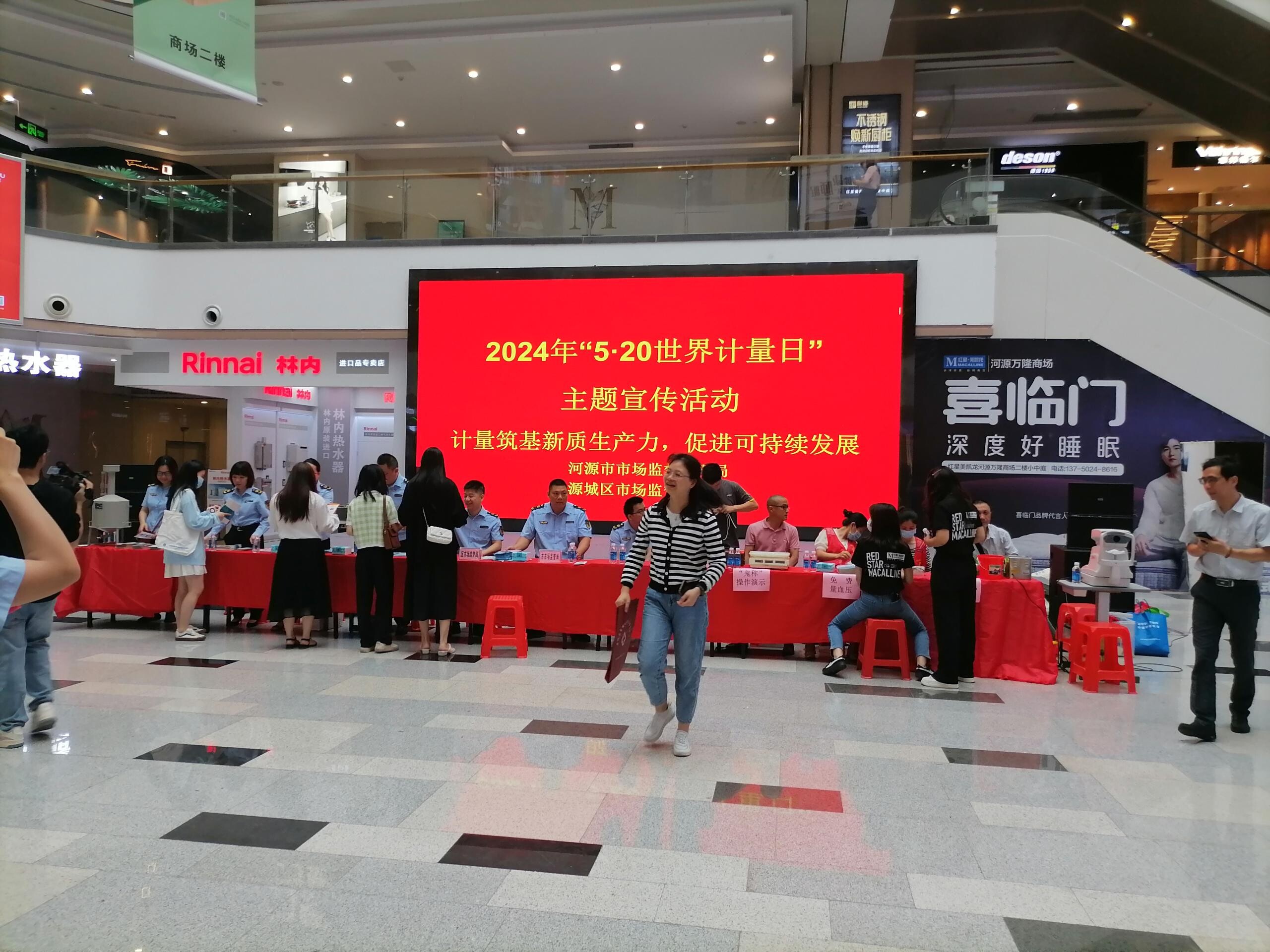 2024年5月20日为第25个“世界计量日”,围绕2024年世界计量日活动主题“可持续发展”和中国特别主题“计量筑基新质生产力,促进可持续发展”,市市场监管局联合源城区市场监管局在河源市万隆家居城开展2024年“世界计量日”主题宣传活动,加强计量科普宣传工作,让更多市民了解计量、关注计量,切实增强全社会计量意识。