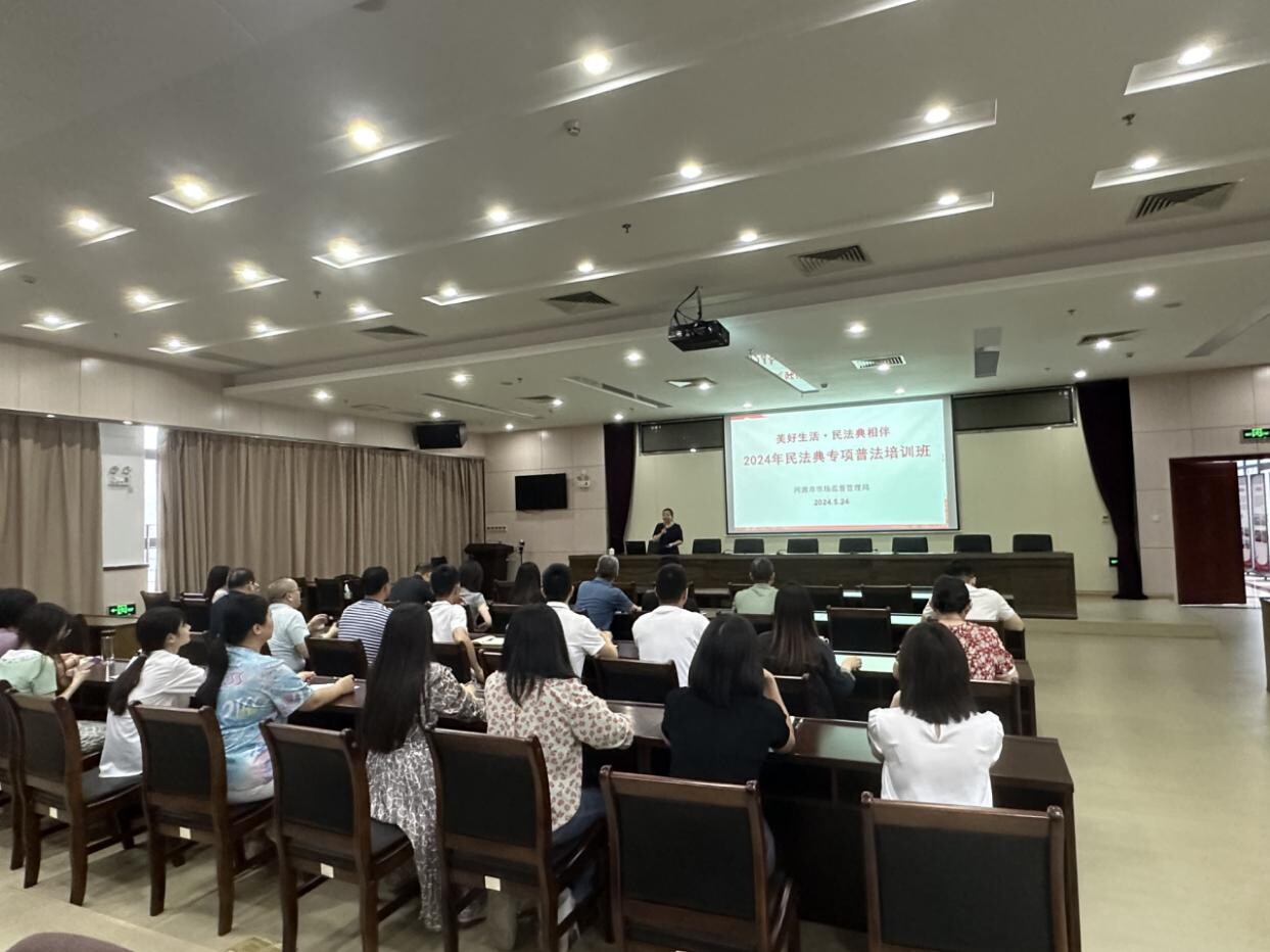 今年5月是全国第四个“民法典宣传月”,为深入学习贯彻习近平法治思想,推进“八五”普法计划,2024年5月24日,市市场监管局举办2024年民法典专项普法培训班,聚焦优化法治化营商环境,开展民法典等相关法律法规普法宣传。