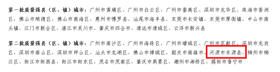 东源县成功入选广东省质量强县(区、镇)培育建设名单