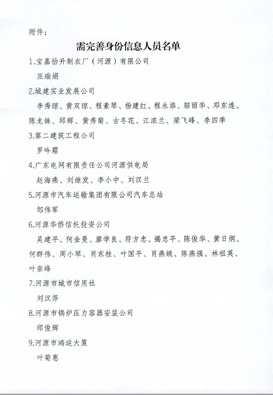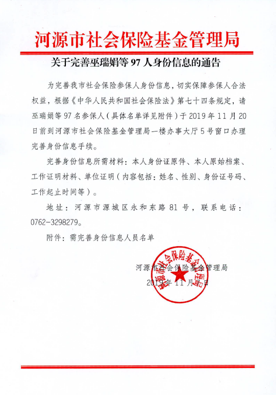 关于完善巫瑞娟等97人身份信息的通告