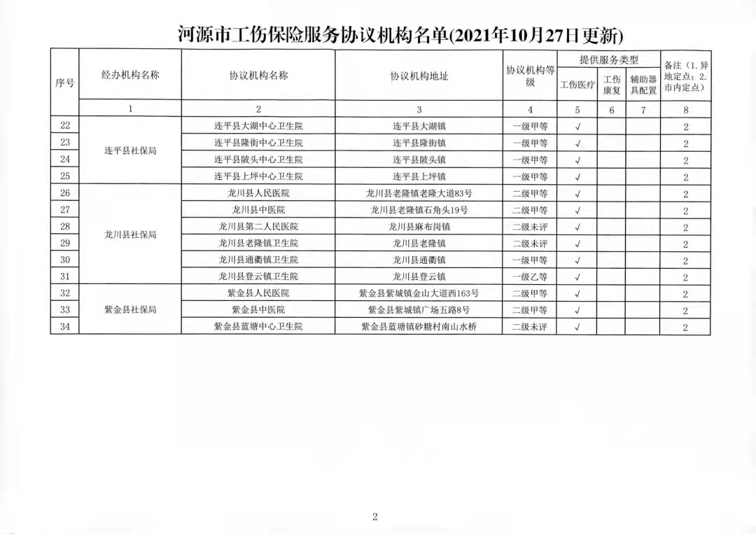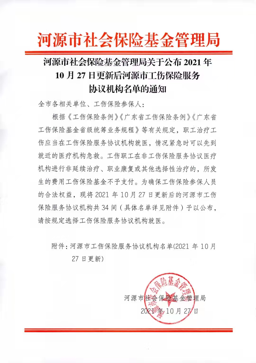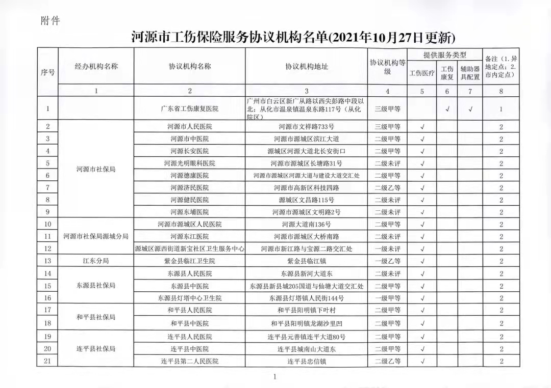 关于公布2021年10月27日更新后河源市工伤保险