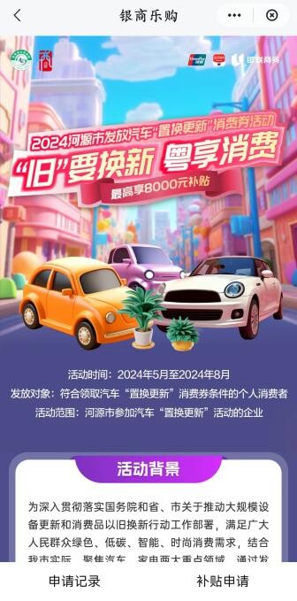 ②点击【旧要焕新 粤享消费 河源市汽车置换更新】banner