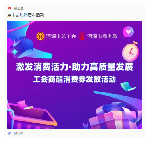 活动期间会员从“粤工惠·河源号”小程序(或从河源市总工会微信公众号活动推文)进入活动界面,点击参加活动,即获得消费券抽奖资格。