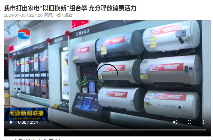 同样因“以旧换新”政策取得显著的效益的还有鼎信科技旗下门店,“5、6月份销售数据环比3、4月份增长了约45%。”河源鼎信科技有限公司营销负责人黄培基说。