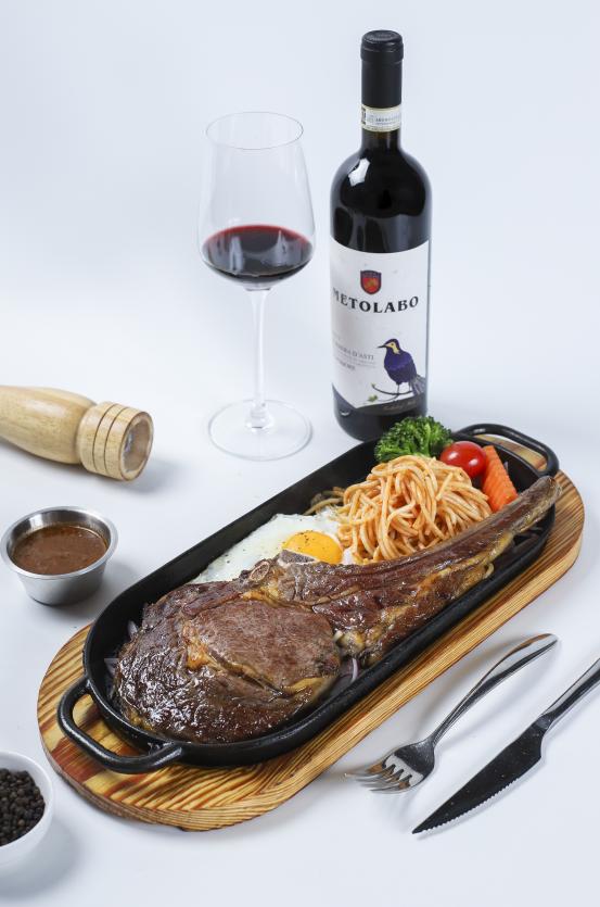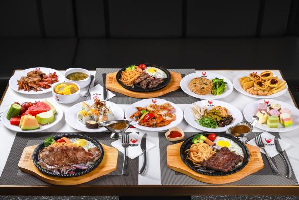 位于中骏世界城三楼,餐厅点牛扒就送自助任吃,一位大人可以携带一位一米二以下的小朋友免费吃自助餐。