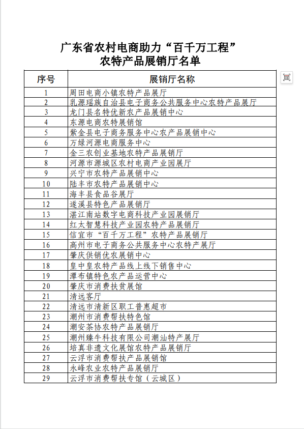 12月19日,广东省商务厅公布电商助力“百千万工程”农特产品展销厅名单。此次名单中,全省电商助力“百千万工程”农特产品展销厅共29个,我市推荐选送的东源电商农特展销馆、紫金县电子商务服务中心农产品展销中心、万绿河源电商服务中心、金三农创业基地农特产品展销厅和河源市源城区农村电商产业园展厅共5个项目成功入围。