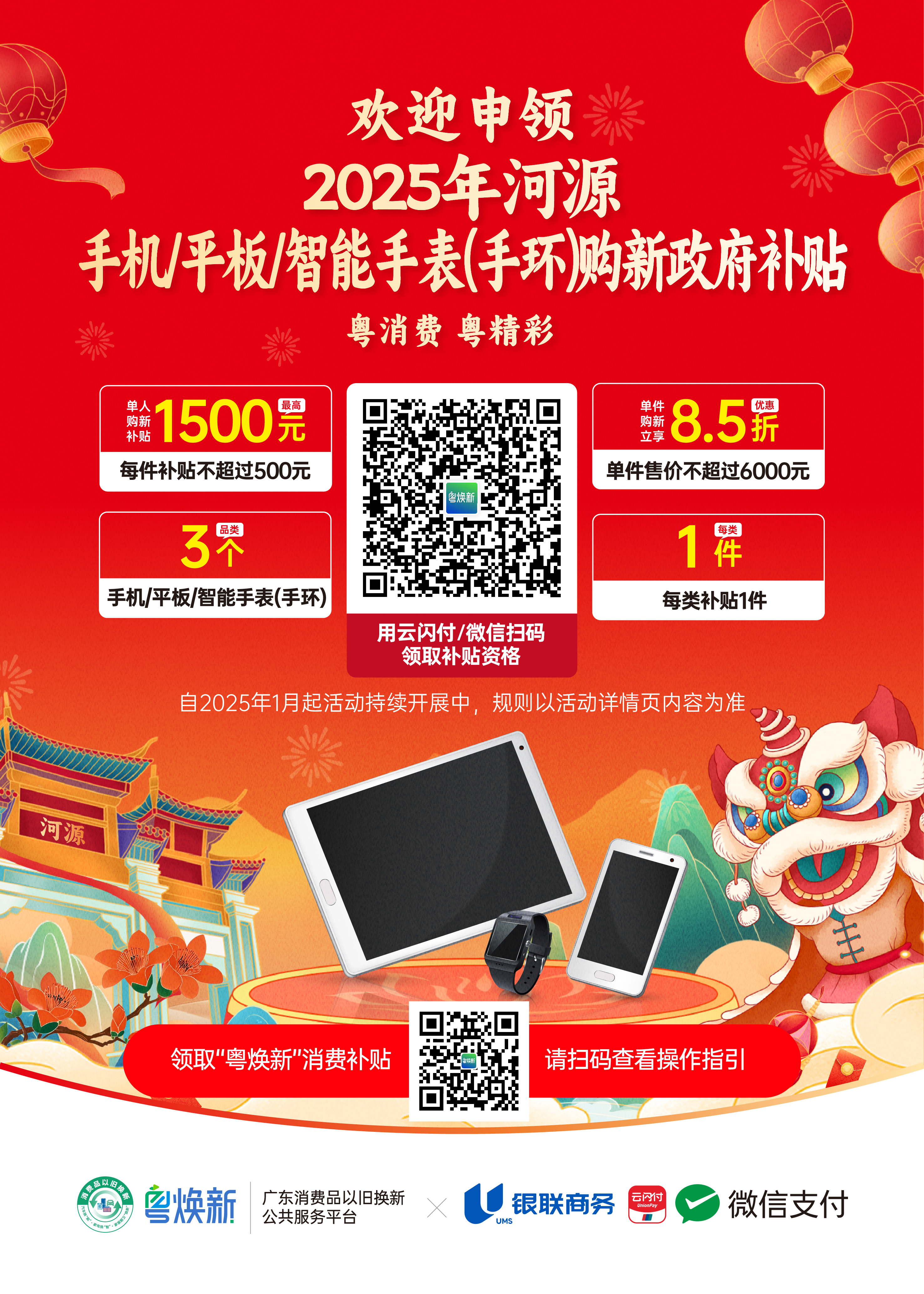 【河源】手机等数码产品购新狂欢,补贴封顶500元,此刻入手最划算!