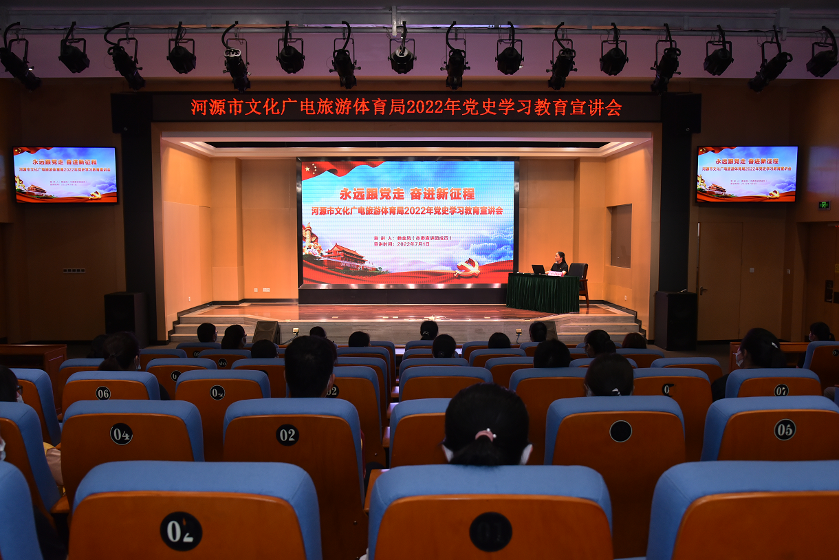 为推动党史学习教育深入开展,让学习教育常态化长效化制度机制落实,巩固拓展学习教育成果,7月1日下午,河源市文化广电旅游体育局在图书馆组织开展“永远跟党走 奋进新征程”党史学习教育,100多名党员参加了活动。
