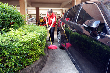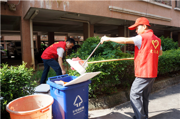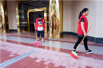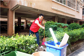 2017年9月9日上午,市公积金中心志愿服务队成员到长安街金安小区开展清洁活动。