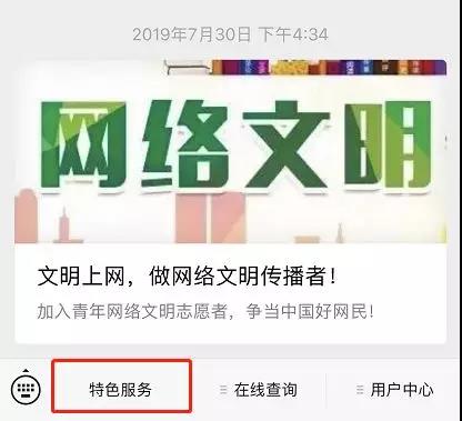 二、关注后,点击菜单栏“特色服务”