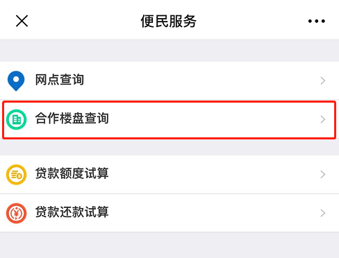四、点击“合作楼盘查询”选项