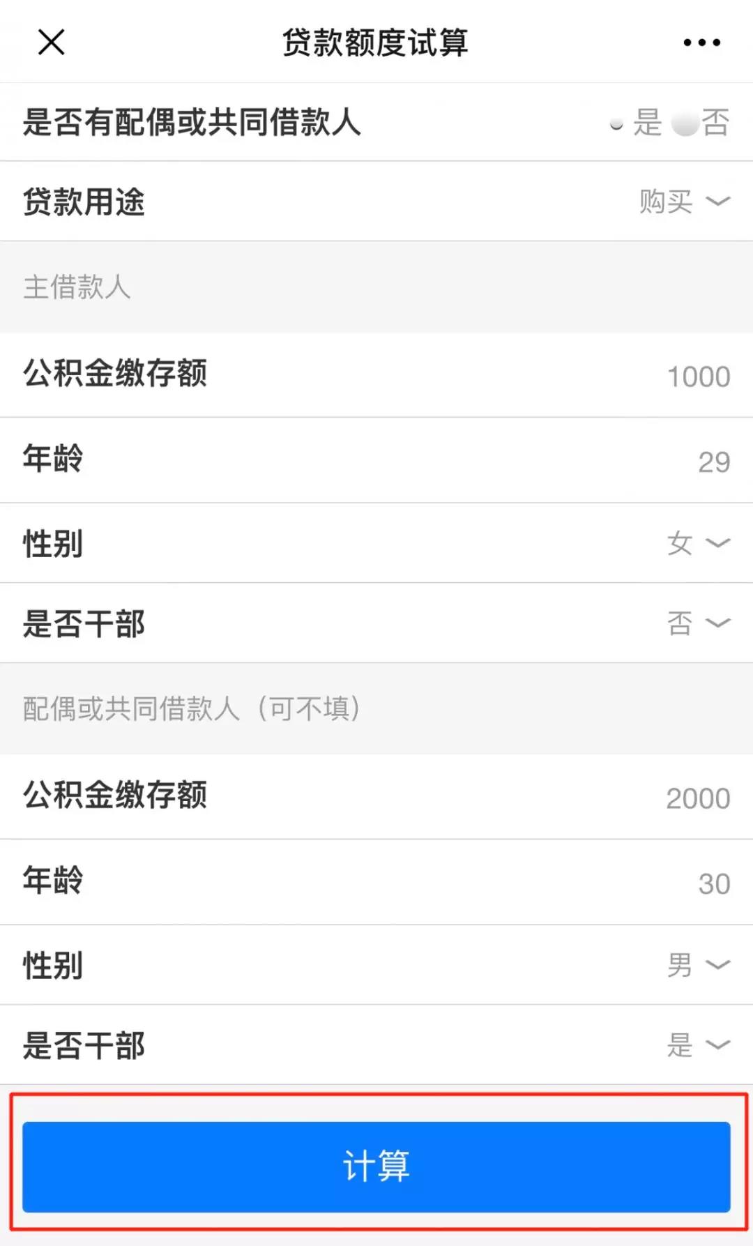 ★计算公式:借款人额度+共同借款人额度;