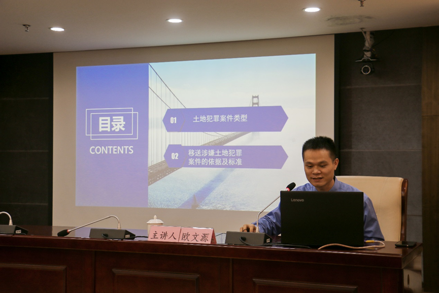 培训班邀请了河源市人民检察院欧文源主任、河源职业技术学院毛丹老师,分别就《土地行政执法与刑事司法衔接工作探讨》与新《土地管理法》内容进行授课。培训课程紧密结合自然资源工作实际,详尽阐述“两法衔接”和新《土地管理法》具体条款变化内容,通过理论与案例相结合的方式,让全市自然资源系统干部职工更加深入了解自然资源法律知识,为今后依法行政奠定了良好的理论基础。