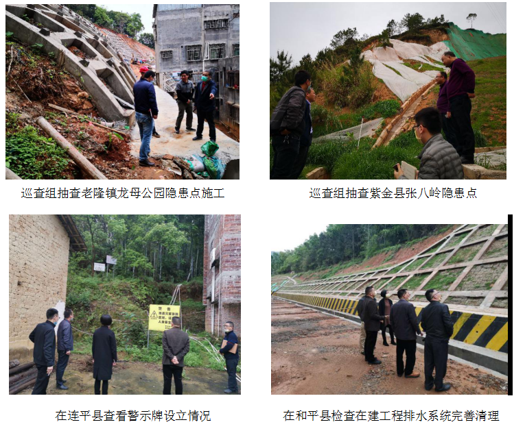 核查组要求各县区要进一步加大汛前地质灾害防治工作力度,保障人民群众生命财产安全。一是加大巡查排查力度,加强与专业技术支撑单位协作,在汛期及强降雨情况下,联合进行地质灾害巡查排查,对地质灾害隐患点提供更科学的指导防护。二是在防控在册地灾隐患点的基础上,扩大巡查排查范围,特别加强人群集中点的排查巡查。三是做到地灾隐患点巡查排查、群防群测、责任落实等全覆盖。四是督促治理工程施工单位做好地灾点的排险工程,完善排水系统,边坡安全防护,安全文明施工等措施,确保安全的情况下,有序推进治理工作。五是全面落实地灾预警预报和灾情险情速报制度,做到早发现、早处置,杜绝人员伤亡和减少财产损失。六是在汛前地质灾害排查过程中,对隐患点周围群众发放防灾工作明白卡、防灾避险明白卡,宣传引导群众主动识别、预判、防御地质灾害隐患,提高群众防灾避灾意识。七是落实领导带班制度,加强值班值守,形成齐抓共管,共防共治的地质灾害防治机制。