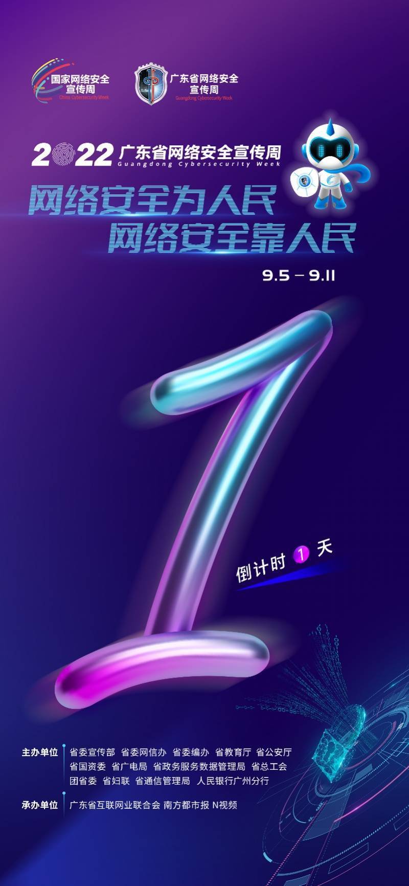 本届广东省网络安全宣传周由省委宣传部、省委网信办、省委编办、省教育厅、省公安厅、省国资委、省广电局、省政务服务数据管理局、省总工会、团省委、省妇联、省通信管理局、人民银行广州分行联合举办;广东省互联网业联合会、南方都市报、N视频联合承办。