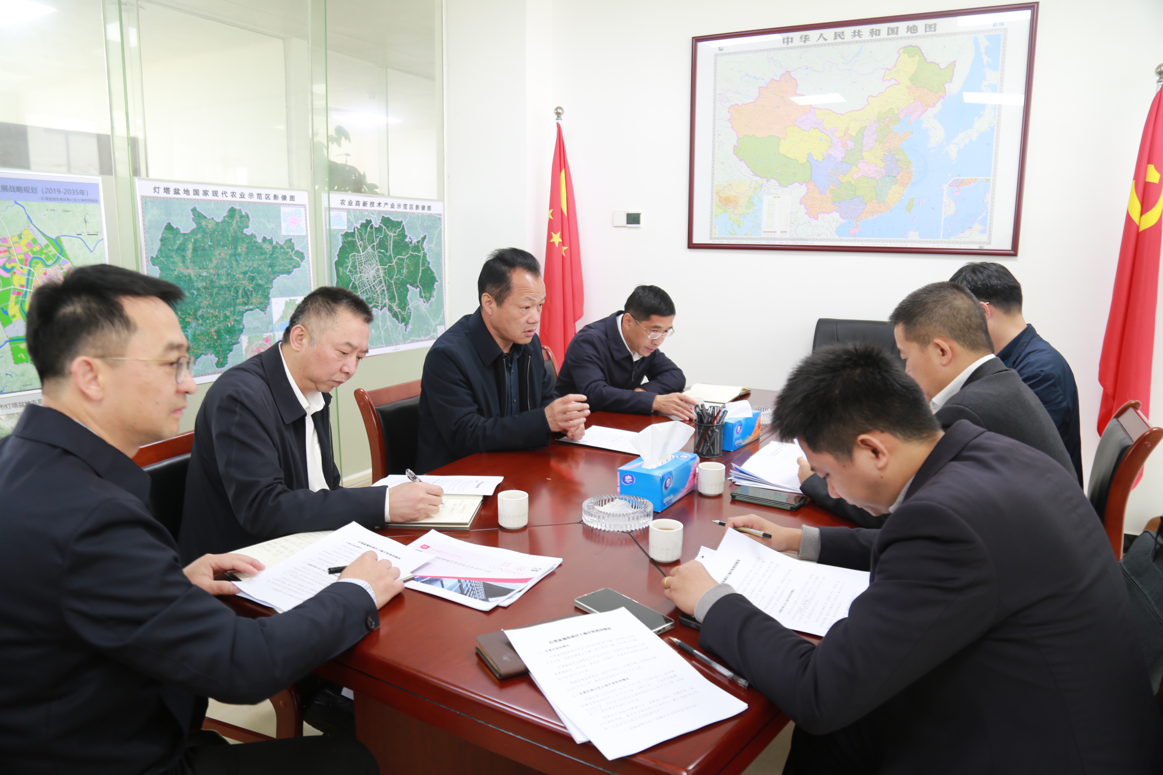 在河源市灯塔盆地农高区管委会召开了座谈会。河源市灯塔盆地农高区党工委书记钟志坚详细介绍了灯塔盆地农高区的土地开发利用情况,以及国家农高区创建情况。