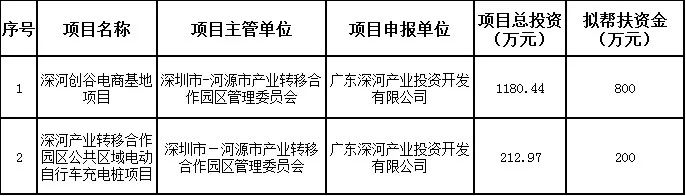 为做好深圳对口帮扶协作河源工作,不断推进产业协作的高质量发展,经研究,深圳对口帮扶协作河源指挥部拟将“深河创谷电商基地项目”等两个项目列入2024年度帮扶协作资金项目计划(详见附件)。根据有关规定,现予以公示,自2024年10月26日至2024年11月1日止。