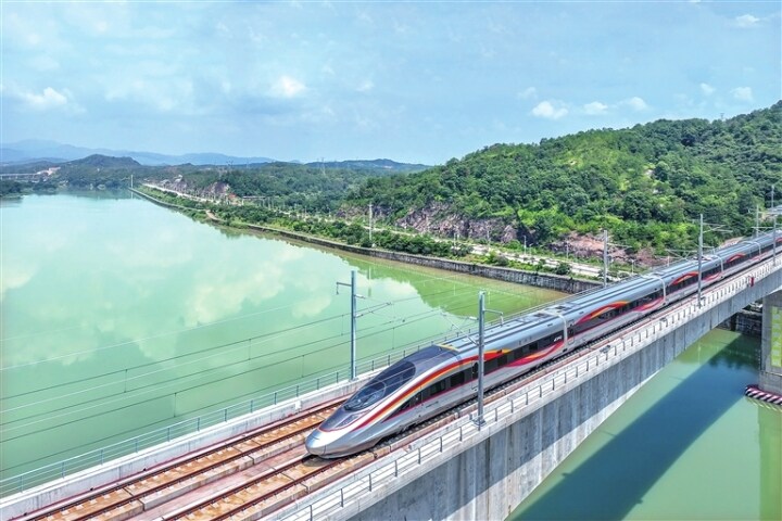 9月12日,梅龙高铁试乘车途径梅龙高铁龙川段东江特大桥。今日,梅龙高铁正式通车。