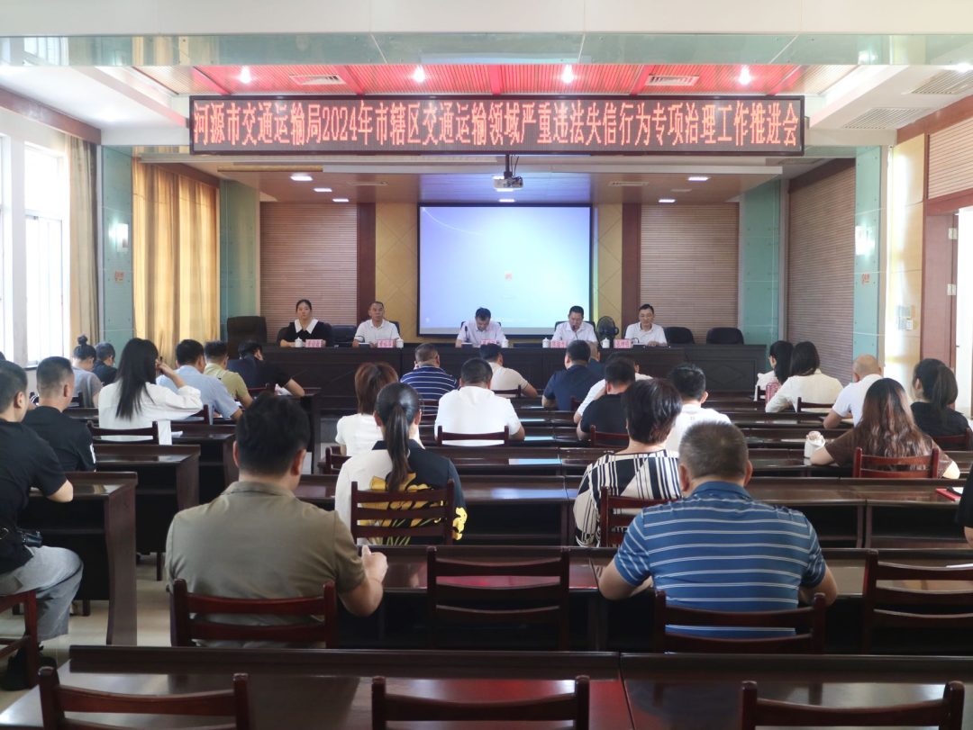为推进全市交通运输领域严重违法失信行为专项治理工作,切实增强我市交通运输行业从业人员依法诚信经营意识,11月12日,市交通运输局组织召开2024年市辖区交通运输领域严重违法失信行为专项治理工作推进会。市交通运输局副局长廖日强同志出席会议并讲话,源城区、东源县、紫金县、连平县、江东新区交通运输主管部门相关负责同志以及纳入《河源市交通运输领域2024年9月严重违法失信行为专项治理台账及进度表》的相关企业负责人参加会议。