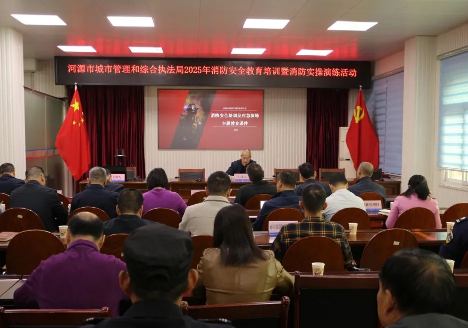 为压紧压实消防安全责任,全面提升干部职工消防安全素养与应急处置能力,12月6日,河源市城管综合执法局组织开展2025年消防安全教育培训暨消防实操演练活动。局机关全体干部职工,直属单位正副主任、安全员,市公园事务服务中心第三方包组代表全程参训,以“理论+实操”的形式筑牢安全防线。