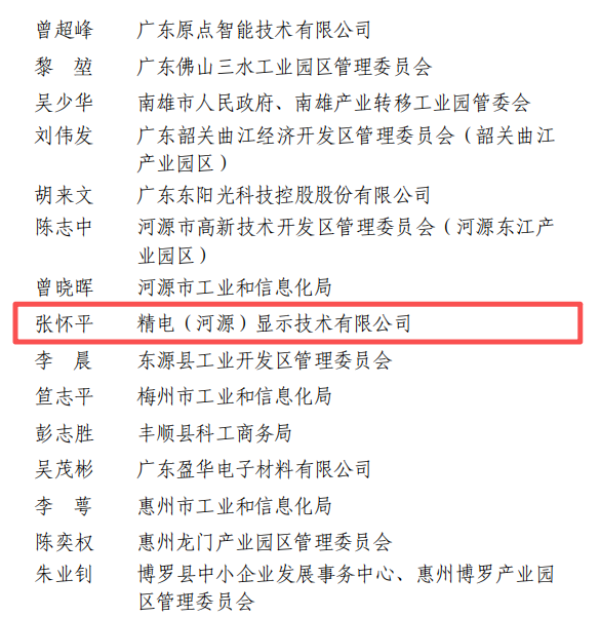 精电(河源)显示技术有限公司作为我区新一代电子信息产业的龙头企业,主要从事液晶显示屏及模组的研发和生产,目前在全球车载显示市场占有率排名第一,累计申请专利超过100项,先后荣获国家知识产权优势企业、中国专利奖优秀奖、广东省科学技术奖二等奖等奖项,工业产值年均达50亿元,为我区工业经济增长作出了重要贡献。今年,该企业乘势启动增资扩产项目,满产后将新增年产值20亿元以上,全面量产后总年产值有望超80亿元,未来还将冲刺百亿目标。张怀平同志作为京东方精电研究院院长,始终坚守岗位、锐意进取,在技术研发领域牵头攻克核心技术难题,助力企业创新,以专业能力和责任担当书写实干篇章。