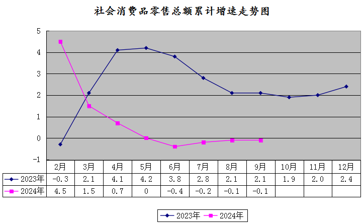 (一)日常生活类商品及石油类商品零售增速比上月回落。9月份,粮油食品类、饮料类商品零售分别增长5.0%、5.5%,比上月回落18.0个、2.5个百分点,粮油食品类商品拉动限额以上零售额增长作用比上月减弱1.3个百分点;烟酒类、服装鞋帽类、石油及制品类商品零售分别下降20.5%、9.9%、20.2%,分别拉低限额以上零售额增速0.5个、0.1个、6.6个百分点,烟酒类、石油类商品拉低限额以上零售额增速分别比上月扩大0.8个、2.2个百分点。
