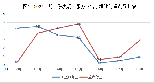 前三季度,全市规上服务业企业实现营业收入56.60亿元,同比增长0.9%,比1-7月提高0.4个百分点,比1-5月回落2.3个百分点。其中,重点行业(参与核算)实现营业收入21.08亿元,同比增长2.9%。比1-7月提高2.0个百分点,比1-5月回落1.9个百分点。